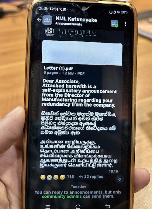 Sri Lanka: NEXT ferme son unique usine textille syndiquée - Par WhatsApp